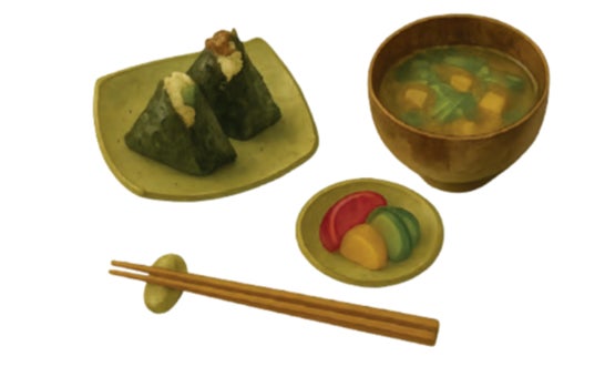 • 農業高校でつくられた梅干しや、三河の佃煮などを味わう、自然栽培米で包んだお結び御膳
