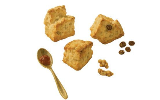 • 三重県産小麦「あやひかり」と体にやさしい素材だけを使用したミックス粉からできたスコーン